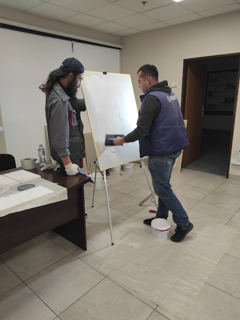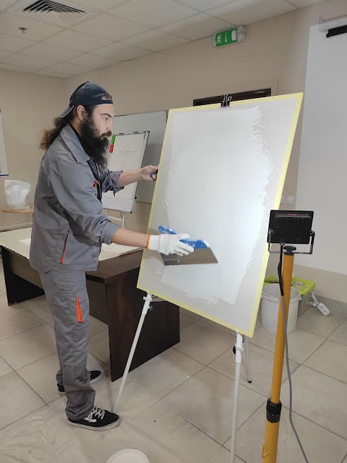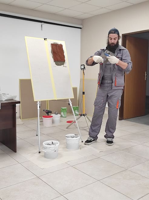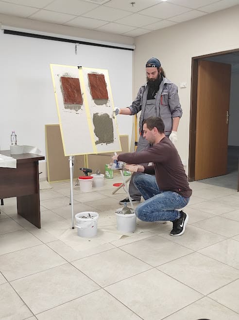 Детально про клеї та ґрунтовки ТМ “Альба” розповів технолог Юрій Семенюк, а майстер-консультант Віталій Соколовський показав, як вони працюють на практиці.